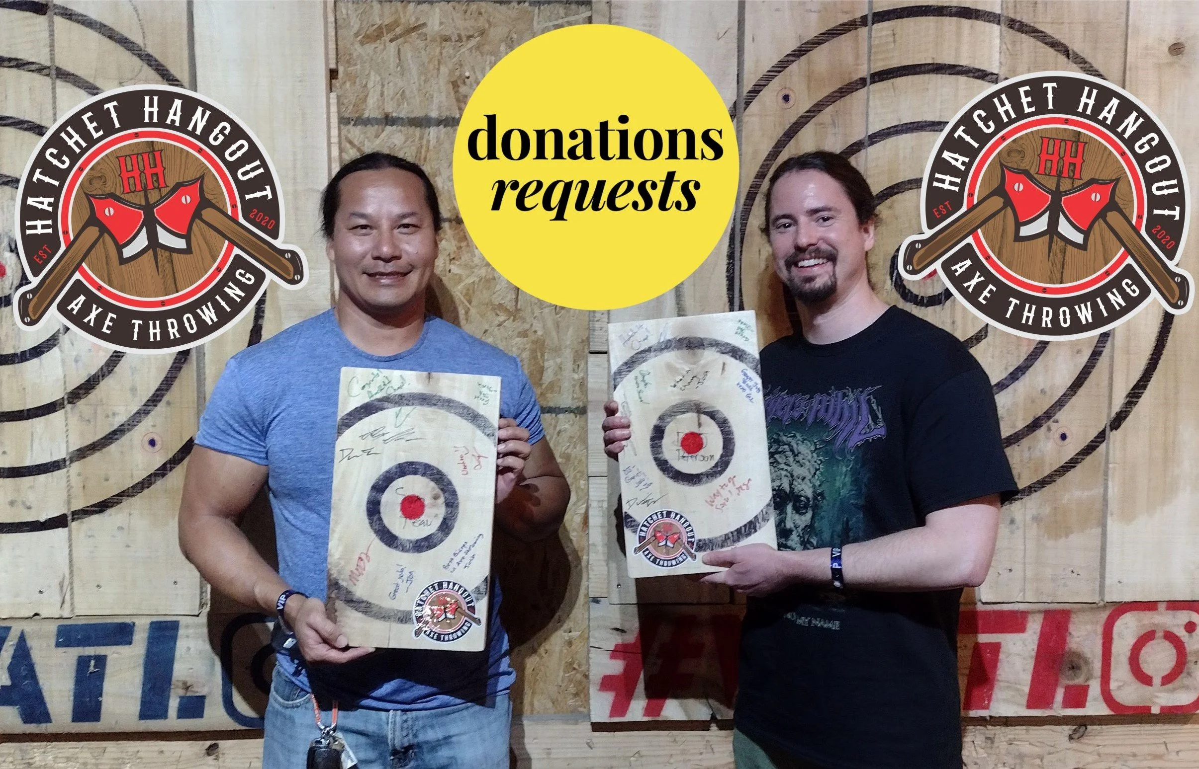 Thank you for inviting Hatchet Hangout Axe Throwing and Axe-Throw-on-the-go! Mobile Trailer Rentals to work with your organization. Giving back to our community is very important to us! Since we have quite a few requests for donations, we are limited in what we are able to provide.